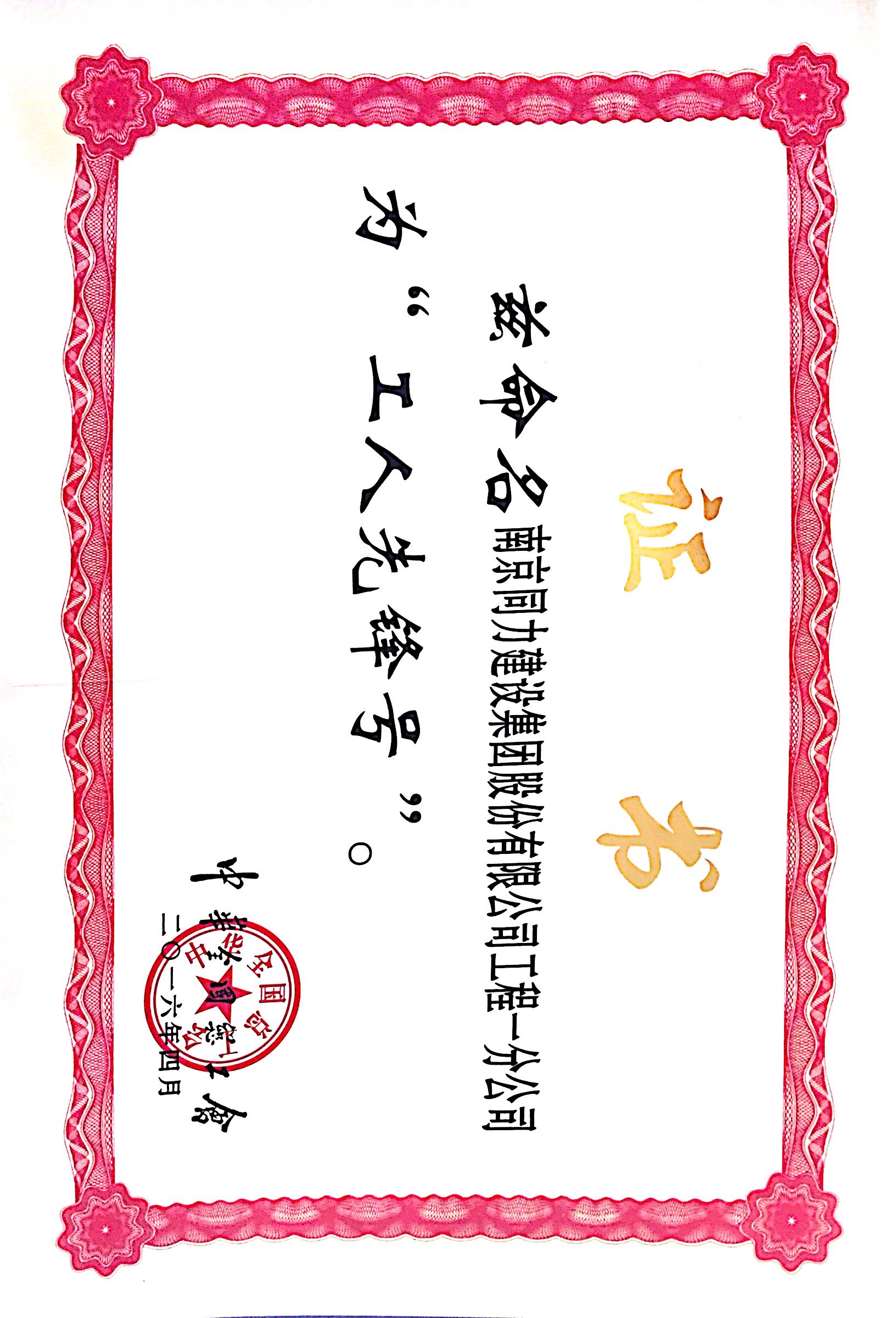 工程一分公司被評為“工人先鋒號”