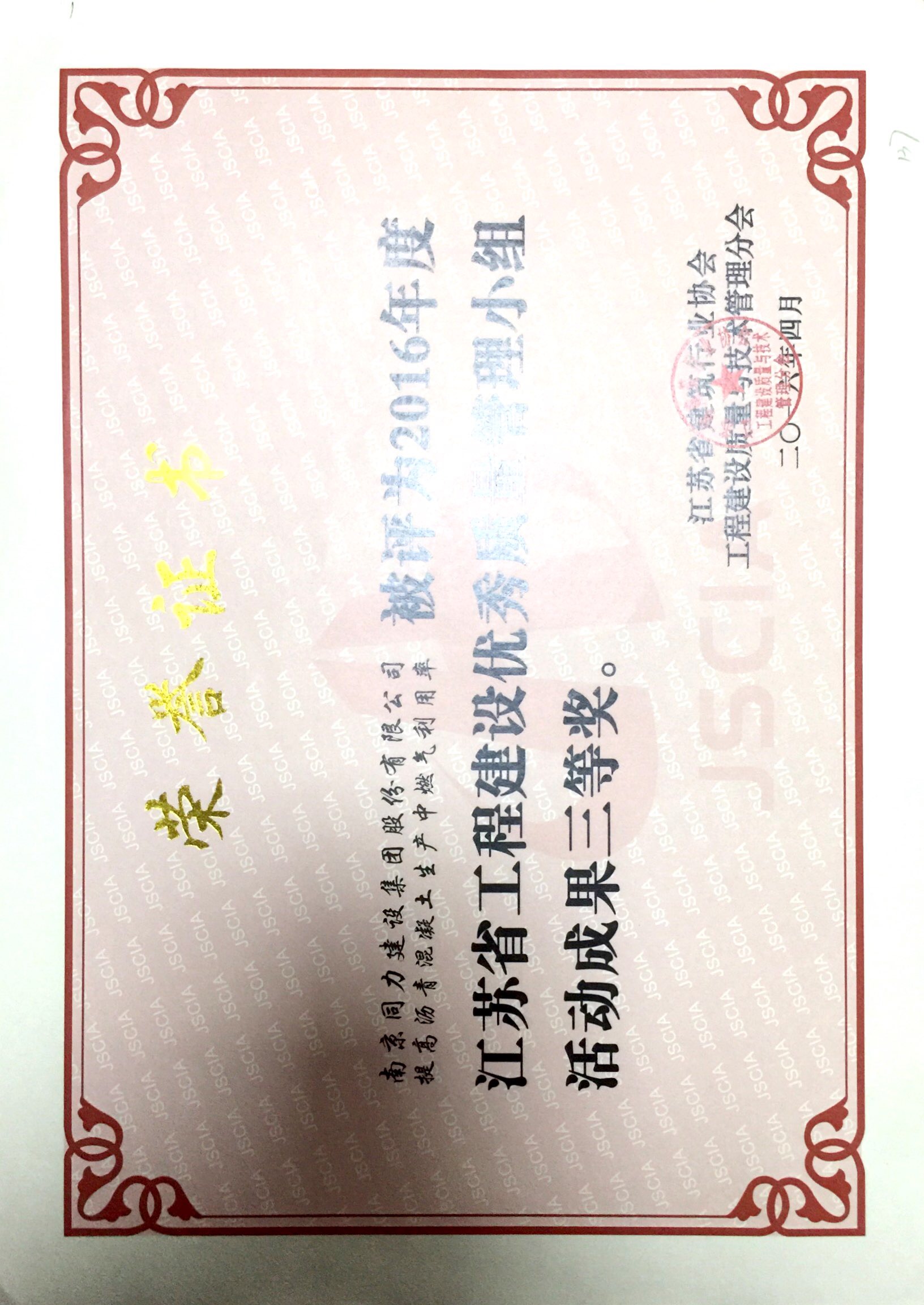 “同力人”QC小組獲得“2016年度江蘇省市...