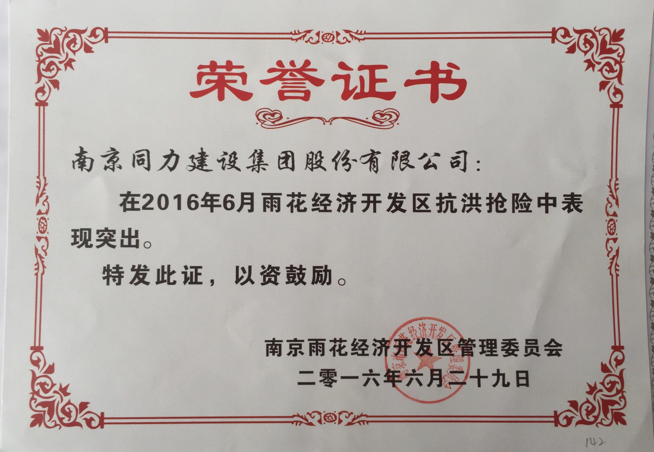 公司受到“雨花經濟開發區抗洪搶險表彰...