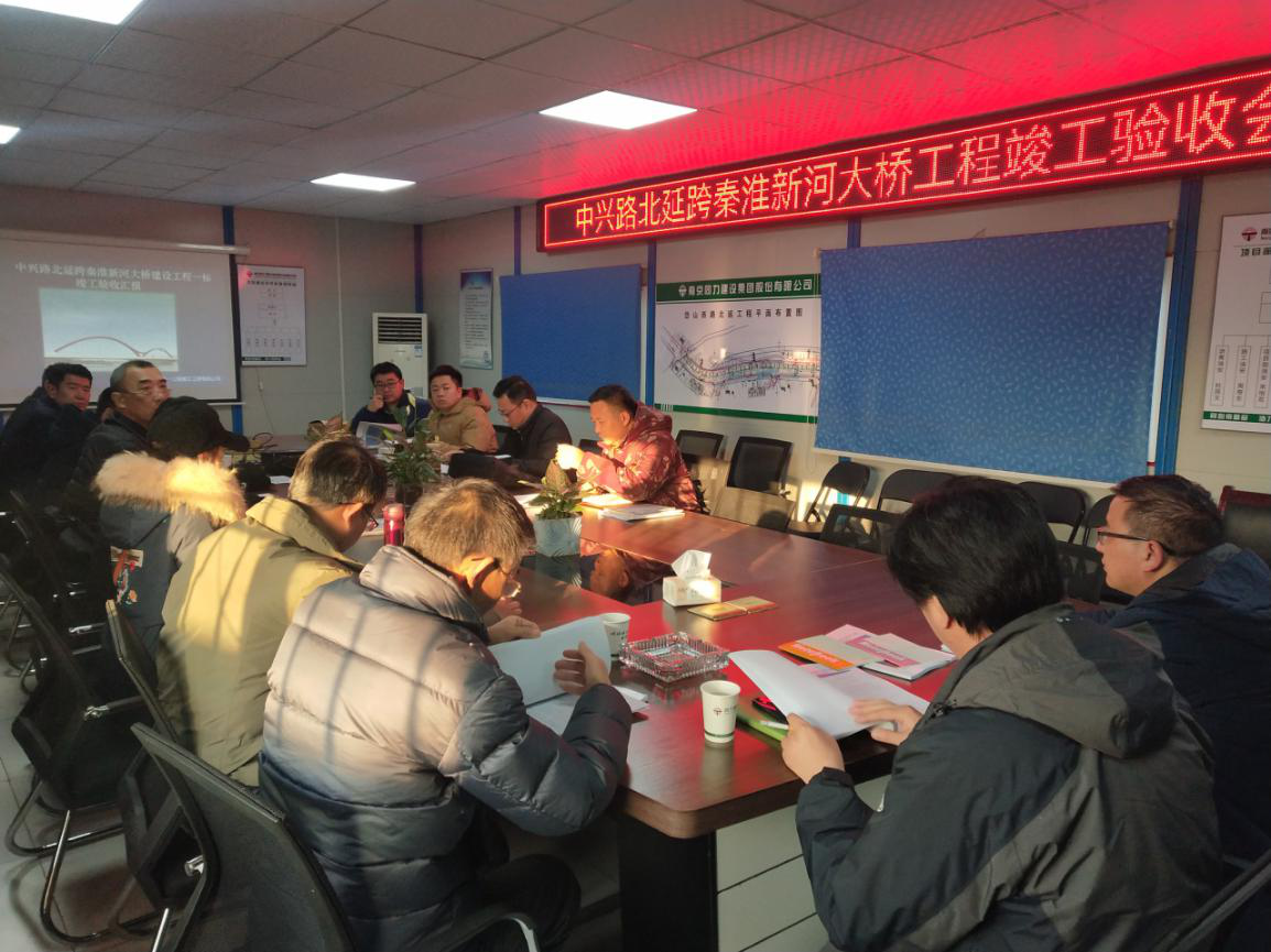 參加驗收相關領導先對現場進行了驗收,然后在中興路北延會議室聽取了各方的驗收總結,南京市市政工程質量監督安全站陳升副站長、史賢龍主任和陳禮對本次驗收先后發表了相關建議,并對項目的完成情況作出了高度的評價。最后經參建各方一致同意,中興路北延跨秦淮新河工程二標段施工工程順利通過本次驗收。